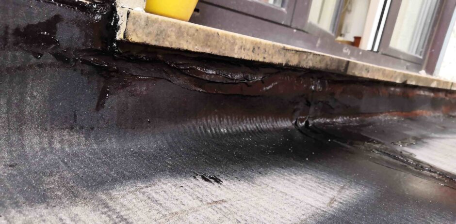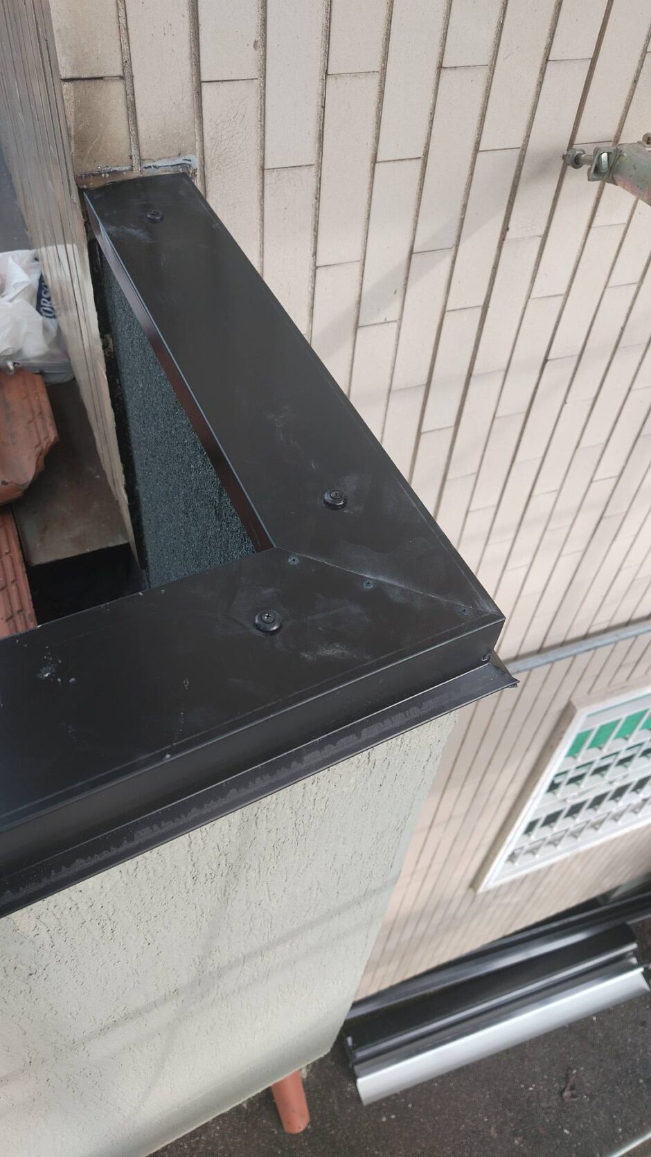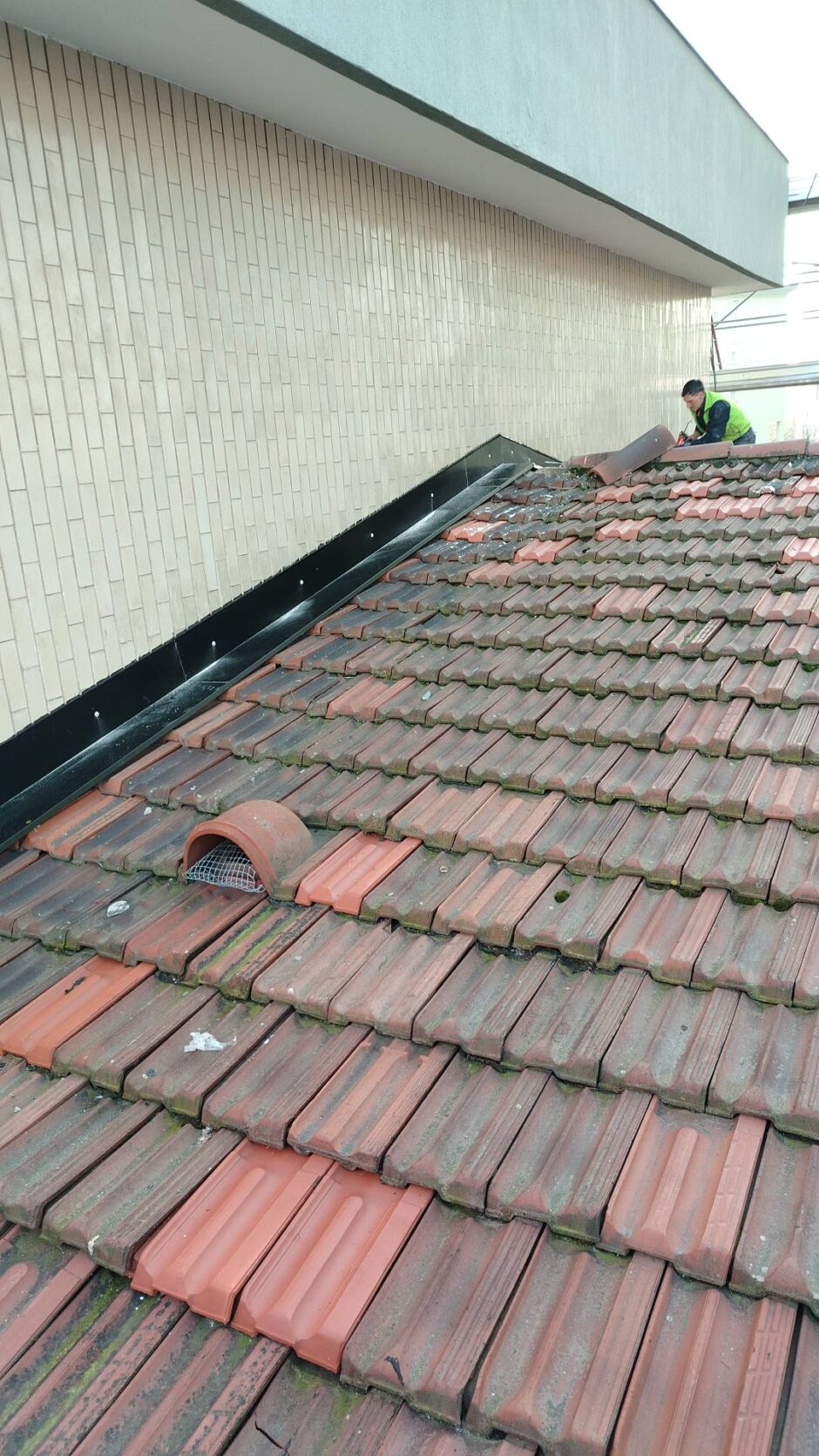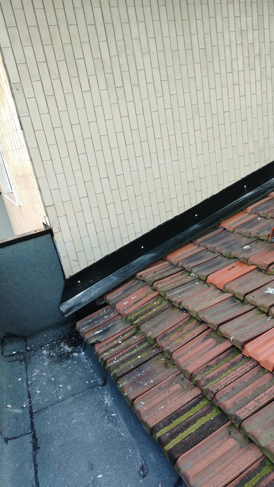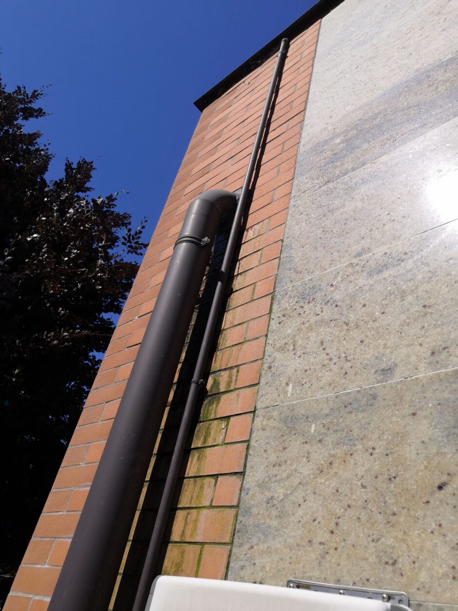 Palazzina costruita negli anni 80, presentava problemi infiltrativi negli appartamento agli ultimi piani, per tale motivo è stato necessario effettuare uno studio preliminare al fine di progettare un intervento corretto. Tra le varie ipotesi è stata scelta la procedura di non rimuovere il fondo sottostante di guaina esistente (in mediocre condizioni, utilizzata come fondo finito per applicare il nuovo strato di guaina del tipo ardesiato posato a cannello). Al fine di rendere solidali i due strati, il primo strato esistente è stato ancorato alla soletta strutturale mediante tasselli tipo “speak”. Tale soluzione ha permesso di ottimizzare i tempi esecutivi e di risoluzione al problema infiltrativo, nonché si è avuto un notevole risparmio economico in termini di abbattimento dei costi di demolizione e di smaltimento, praticamente nulli. Il Lavoro è stato completato a regola d’arte risvoltando con le guaine sui muretti verticali, sino alla testa del parapetto, sui quali sono stati posate le nuove lattonerie in lamiera color nero, dotate di doppio gocciolatoio e tra un tratto e l’altro di sormonti pari a 10 cm . Completa l’opera finiture e stuccature sottogronda e pitturazione finale dei comignoli.