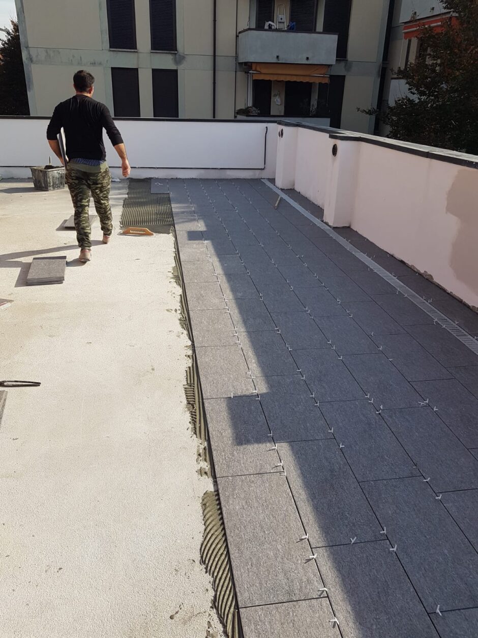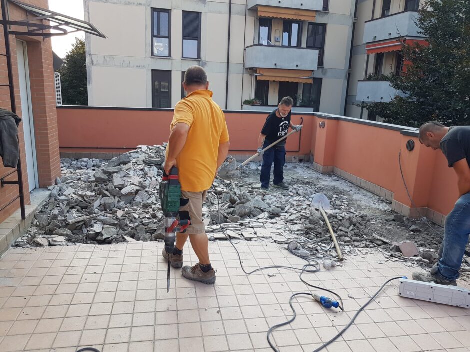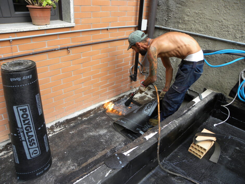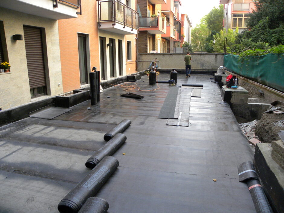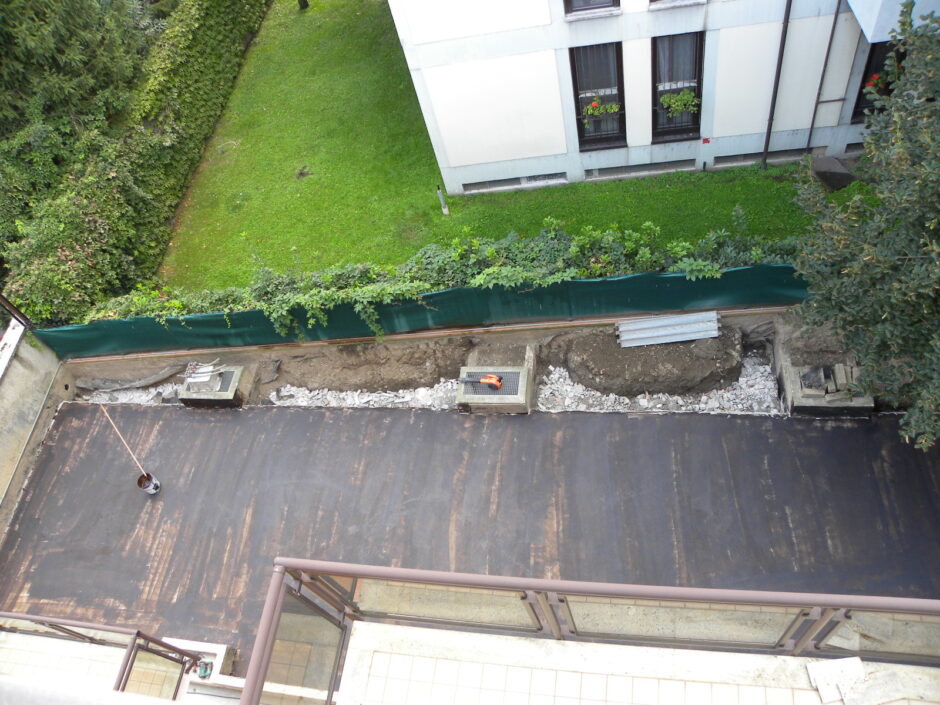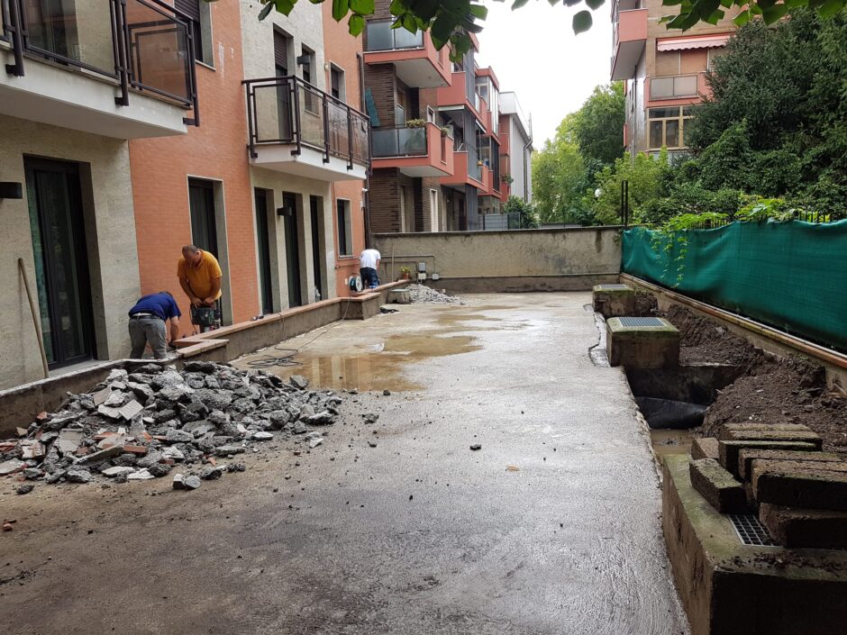 Questa commessa è stata affidata alla TABOR EDILIZIA SRL a seguito delle continue infiltrazioni a piano box e negli appartamenti che i committenti non riuscivano ad arginare a seguiti di eventi metereologici avversi. L’intervento ha coinvolto il modo radicale il rifacimento delle guaine impermeabilizzative e massetto pendenze in giardino, eseguendo anche uno strato drenante con ghiaietto prima di riposizionamento del terreno da coltivo.Per quanto riguarda i 3 balconi degli appartamenti si sono demoliti tutti i massetti fino al vivo della soletta, esecuzione piano pendenze, barriera vapore, inserimento di coibente e doppia guaina di impermeabilizzazione; Lavoro eseguito a regola d’arte soprattutto in corrispondenza delle soglie delle porte e bocchettoni di scarico in piombo perfettamente inseriti tra le guaine. L’esperienza, la professionalità e la qualità nei lavori eseguiti ha fatto sì di risolvere tali problemi infiltrativi con la felicità e l’elogio dei committenti. La TABOR EDILIZIA SRL a garanzia dei lavori eseguiti a regola d’arte, ha rilasciato POLIZZA DECENNALE POSTUMA sulle impermeabilizzazioni.